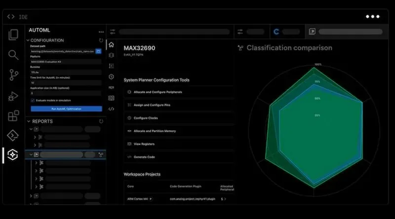 CodeFusion Studio 2.0 now supports AI workflows, enabling developers to bring their own models and deploy them across ADI’s processors and MCUs, from low-power edge devices to high-performance DSPs (digital signal processors).