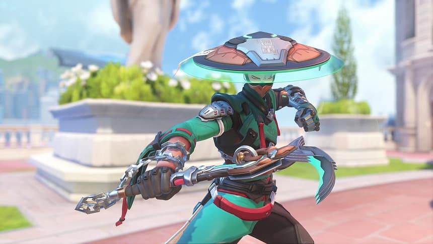 Mizuki is a complex hero, similar on paper to support heroes Brigitte and Lucio, who mix damage with healing in the radius around them, but with his own unique mechanics. He has a constant healing aura around him, which grows more powerful as he deals damage with his weapon or uses other healing abilities. His main weapon is a projectile that bounces off surfaces. One of his abilities, Katashiro Return, offers a burst of movement, but also the ability to teleport back to your starting point within a few seconds.