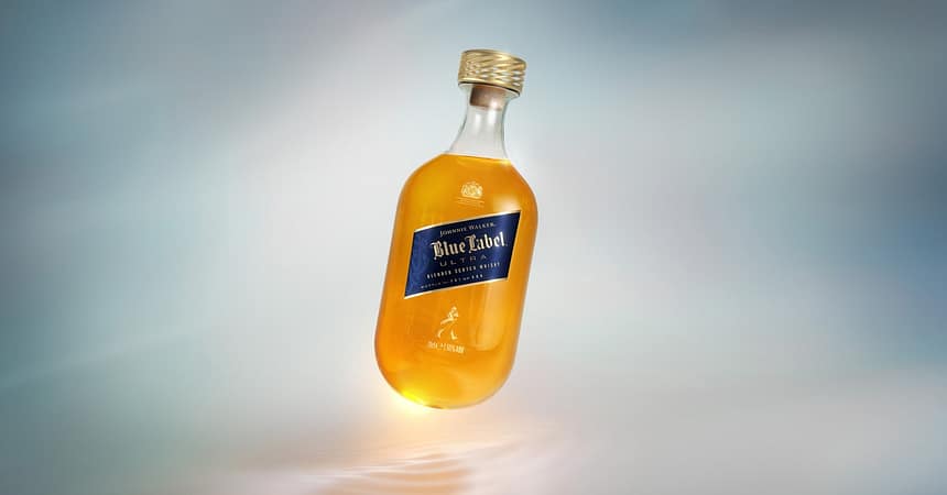At 180 grams (6.35 ounces), the teardrop shaped 70-centiliter glass bottle is considerably lighter than the 850 grams of the current Johnnie Walker Blue Label bottle (without the liquid and the stopper), coming in at one-fifth of the conventional weight. It contains a limited-edition Johnnie Walker Blue Label Ultra whisky. The design has been five years in the making, and it breaks with the brand’s traditional square bottle for the first time.