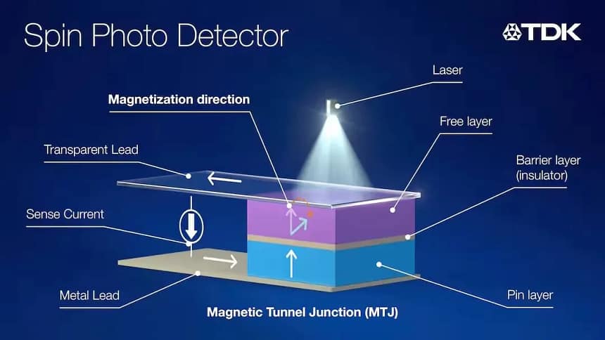TDK claims the world’s first “Spin Photo Detector,” a Photo-Spintronic conversion element that operates at a 20 picoseconds using light with a wavelength of 800 nm.