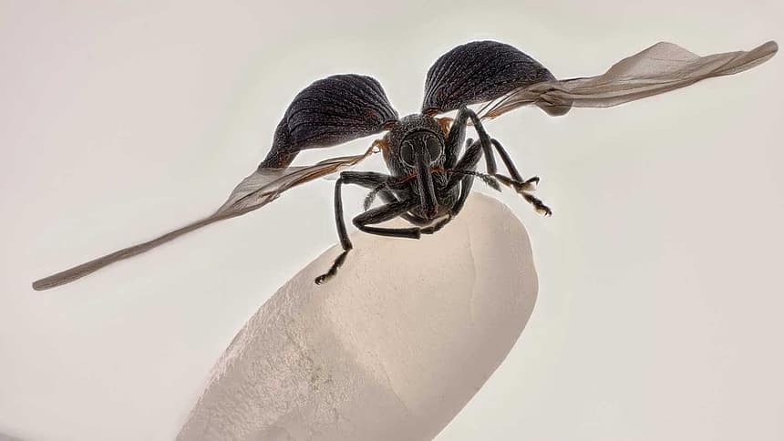 A rice weevil frozen in flight won the 2025 Nikon Small World photo contest