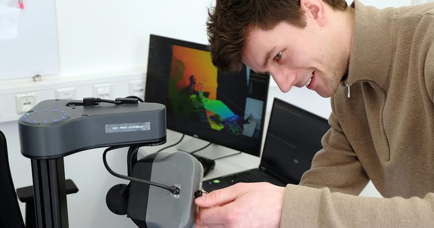 The camera provides two-dimensional images, but those pixels also contain depth information. The robot uses this to build a 3D map of its surroundings, accurate to the centimeter, and constantly updates it as things change.